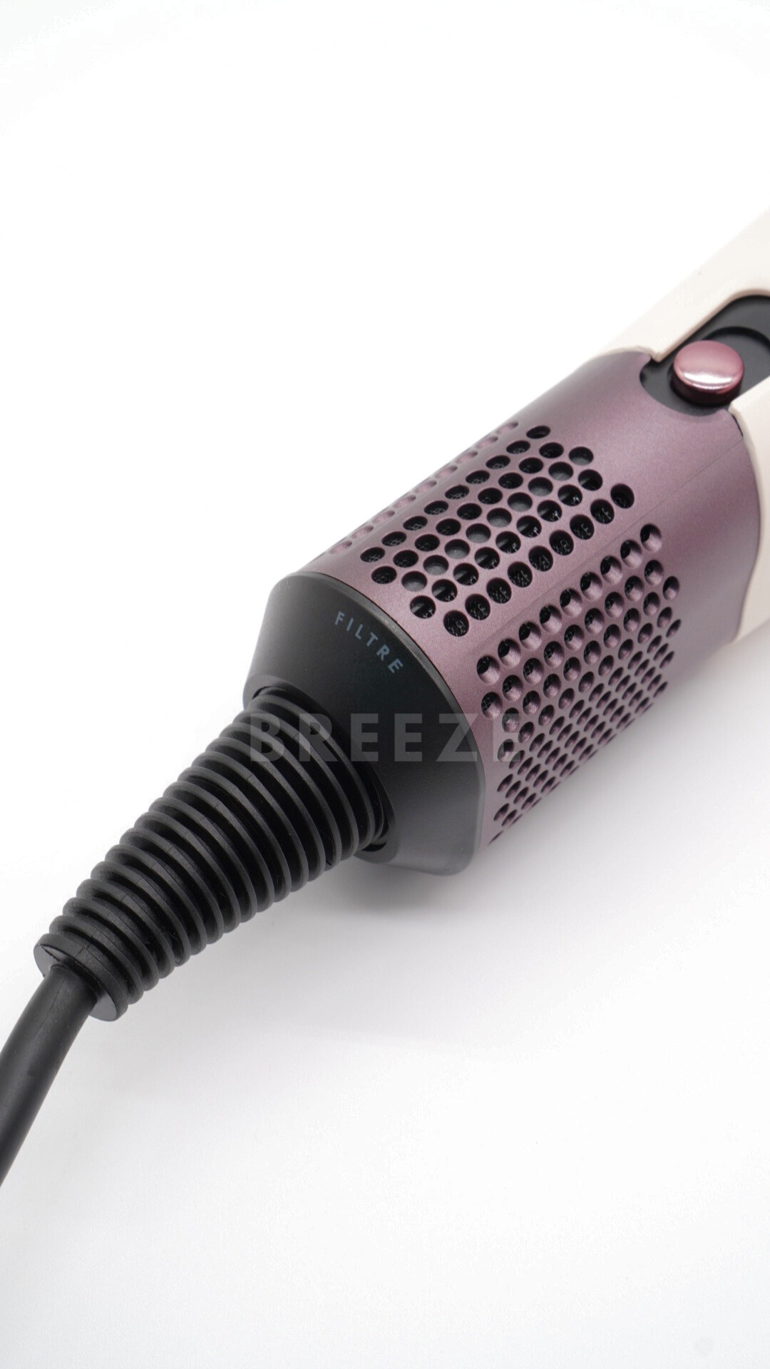 La forma essenziale e minimalista è progettata per adattarsi al flusso d'aria direzionale ad alta pressione, con aperture precise da 1.5 mm che creano lame d'aria a 45° per lisciare e asciugare senza sforzo, garantendo risultati naturali e proteggendo la salute dei capelli.